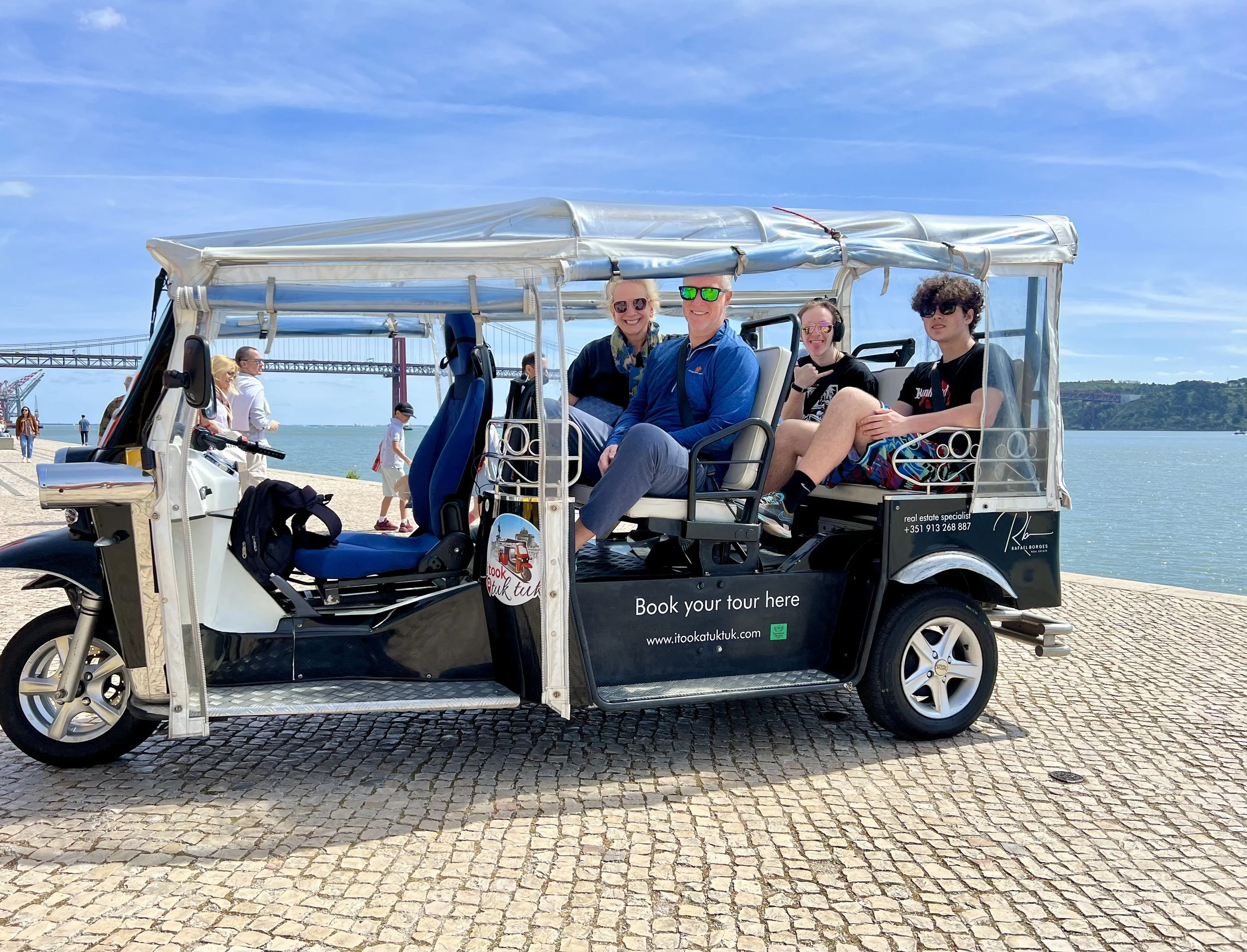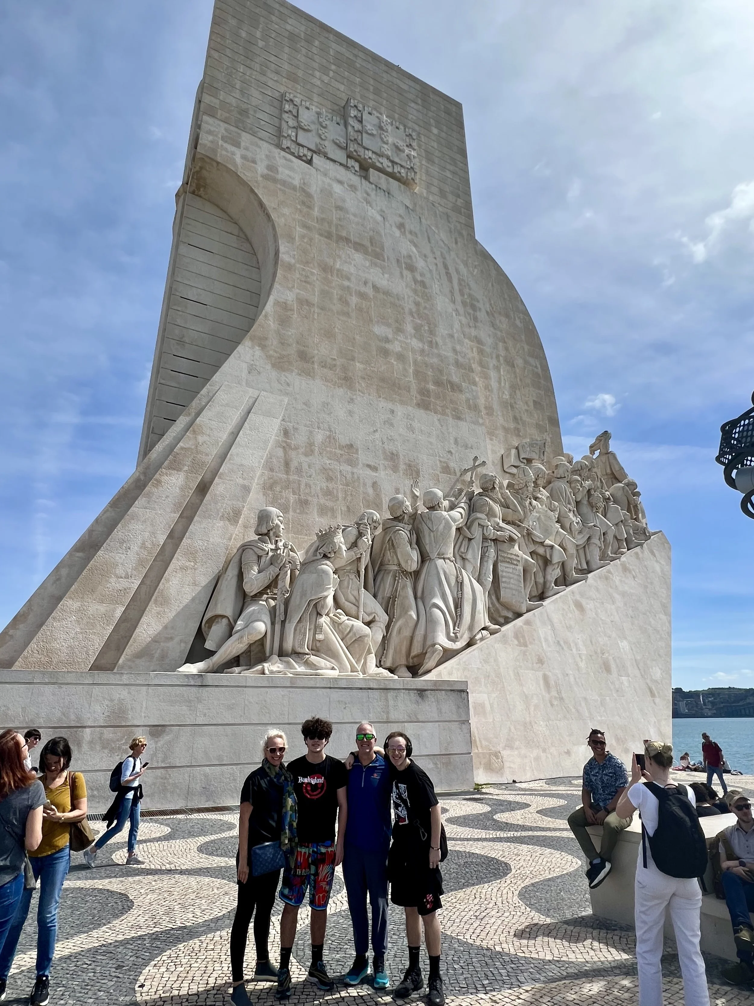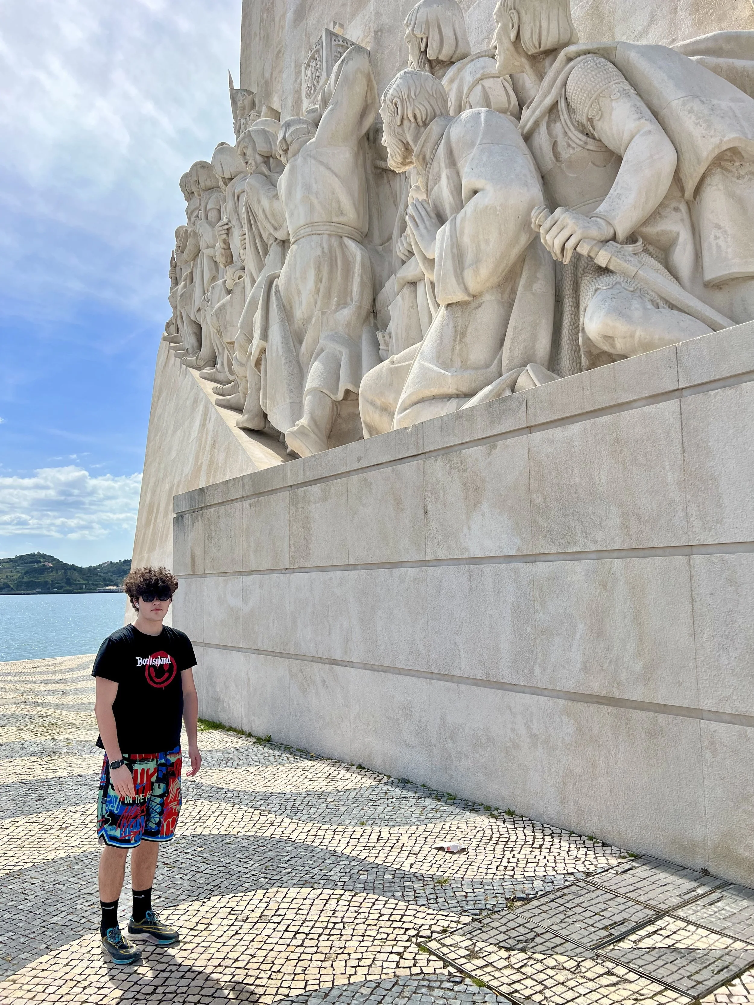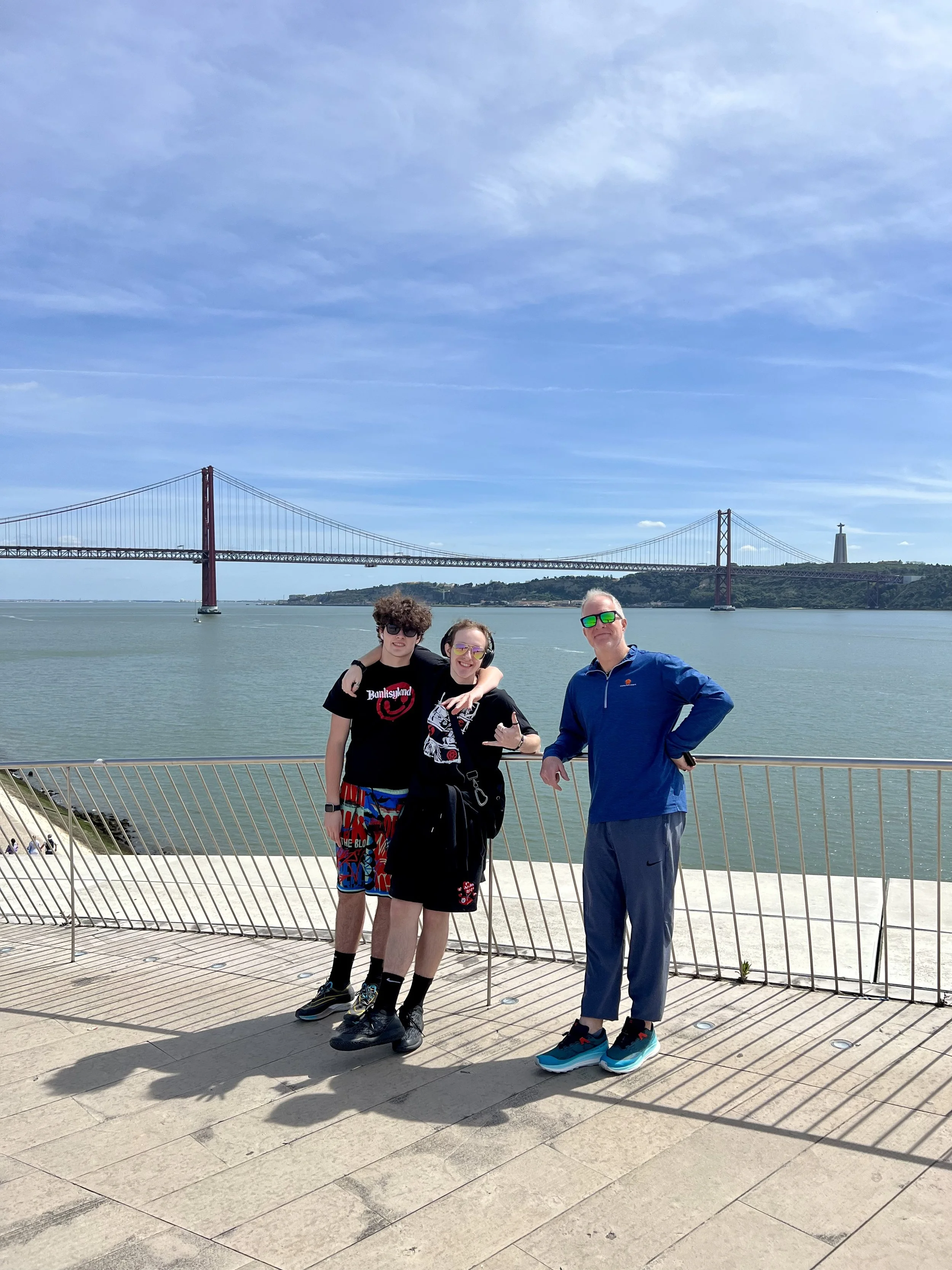 We loved our Tuk Tuk Tour with Paulo (that I booked on Viator and was chartered by I took a tuk tuk which is a wonderful company)! We passed Ramiro where Anthony Bourdain filmed (and next time, when we have more time, we will queue up to eat there). Our first stop was the Old City, then to Grassa, to Fado for cherry liqueur, LX Factory, and nd we went to Pasteis de Belem for a pastel de nata which was delicious! Then we visited the Monastery of the Hieronymites and Tower of Belém, which are Unesco sites. The sailing statue was super interesting and I love that a woman included. And the Pink Street was awesome with the umbrellas!!! Interesting fact is that there are 148 churches in Lisbon. We loved the Time Out Market Lisboa for lunch and we enjoyed sushi and a sushi taco at Confraria and Bo got mediterranean goodies at Manteigaria silva. Back at the hotel, Ryder plugged in his US power strip and blew the power for their room, so we headed to the bar to pass the time and Ryder got an education on how European Power systems work. Less is more indeed!