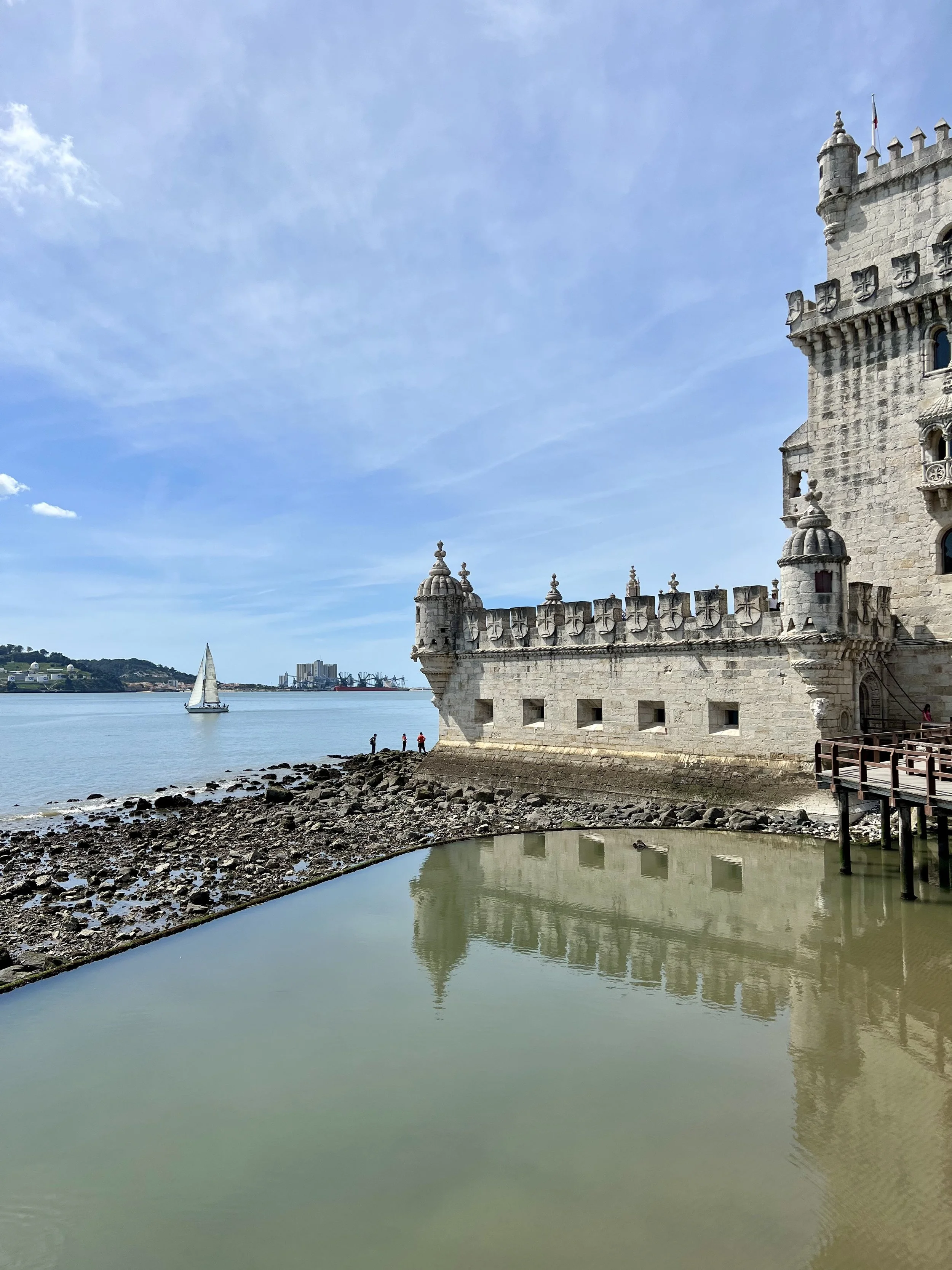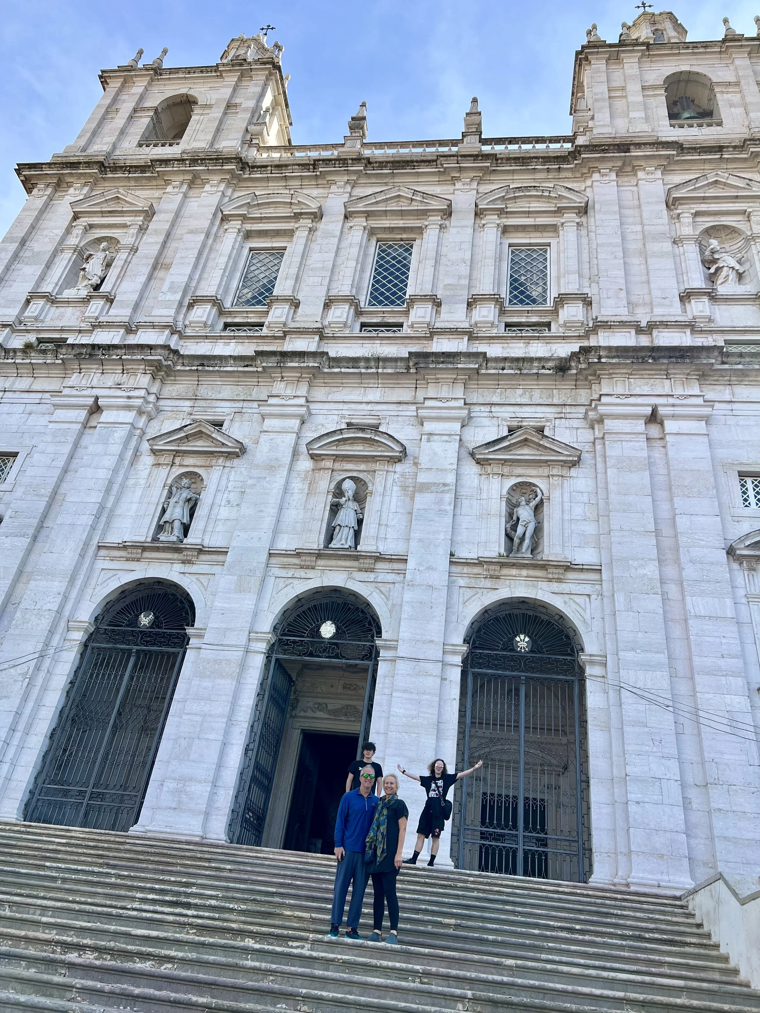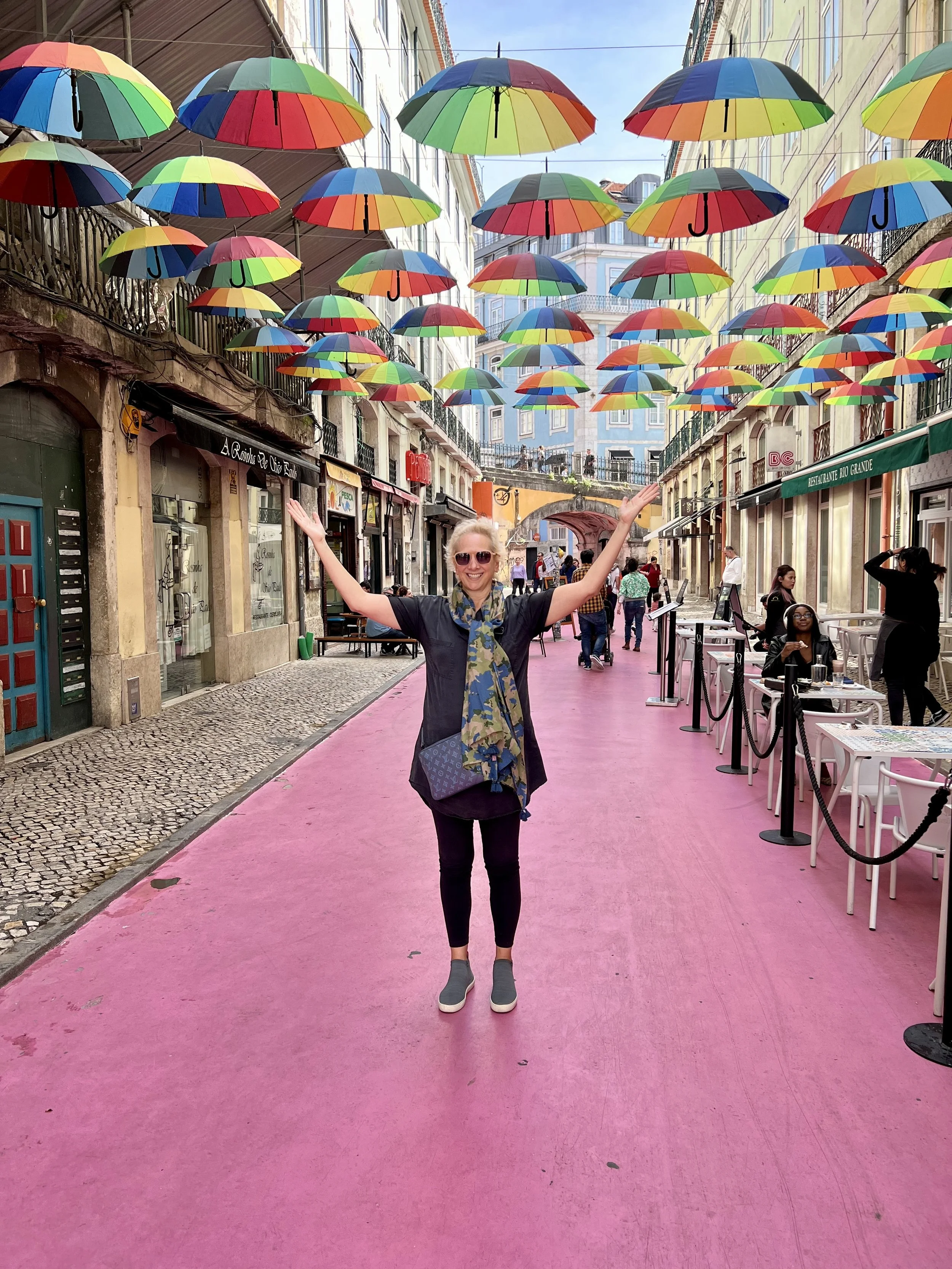 We loved our Tuk Tuk Tour with Paulo (that I booked on Viator and was chartered by I took a tuk tuk which is a wonderful company)! We passed Ramiro where Anthony Bourdain filmed (and next time, when we have more time, we will queue up to eat there). Our first stop was the Old City, then to Grassa, to Fado for cherry liqueur, LX Factory, and nd we went to Pasteis de Belem for a pastel de nata which was delicious! Then we visited the Monastery of the Hieronymites and Tower of Belém, which are Unesco sites. The sailing statue was super interesting and I love that a woman included. And the Pink Street was awesome with the umbrellas!!! Interesting fact is that there are 148 churches in Lisbon. We loved the Time Out Market Lisboa for lunch and we enjoyed sushi and a sushi taco at Confraria and Bo got mediterranean goodies at Manteigaria silva. Back at the hotel, Ryder plugged in his US power strip and blew the power for their room, so we headed to the bar to pass the time and Ryder got an education on how European Power systems work. Less is more indeed!