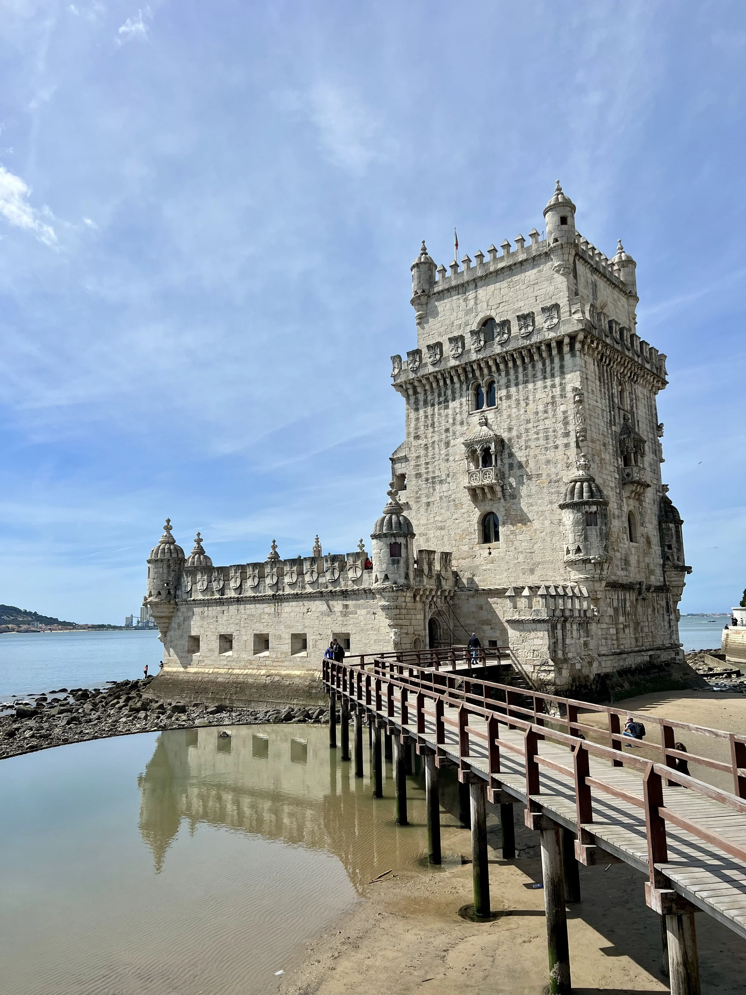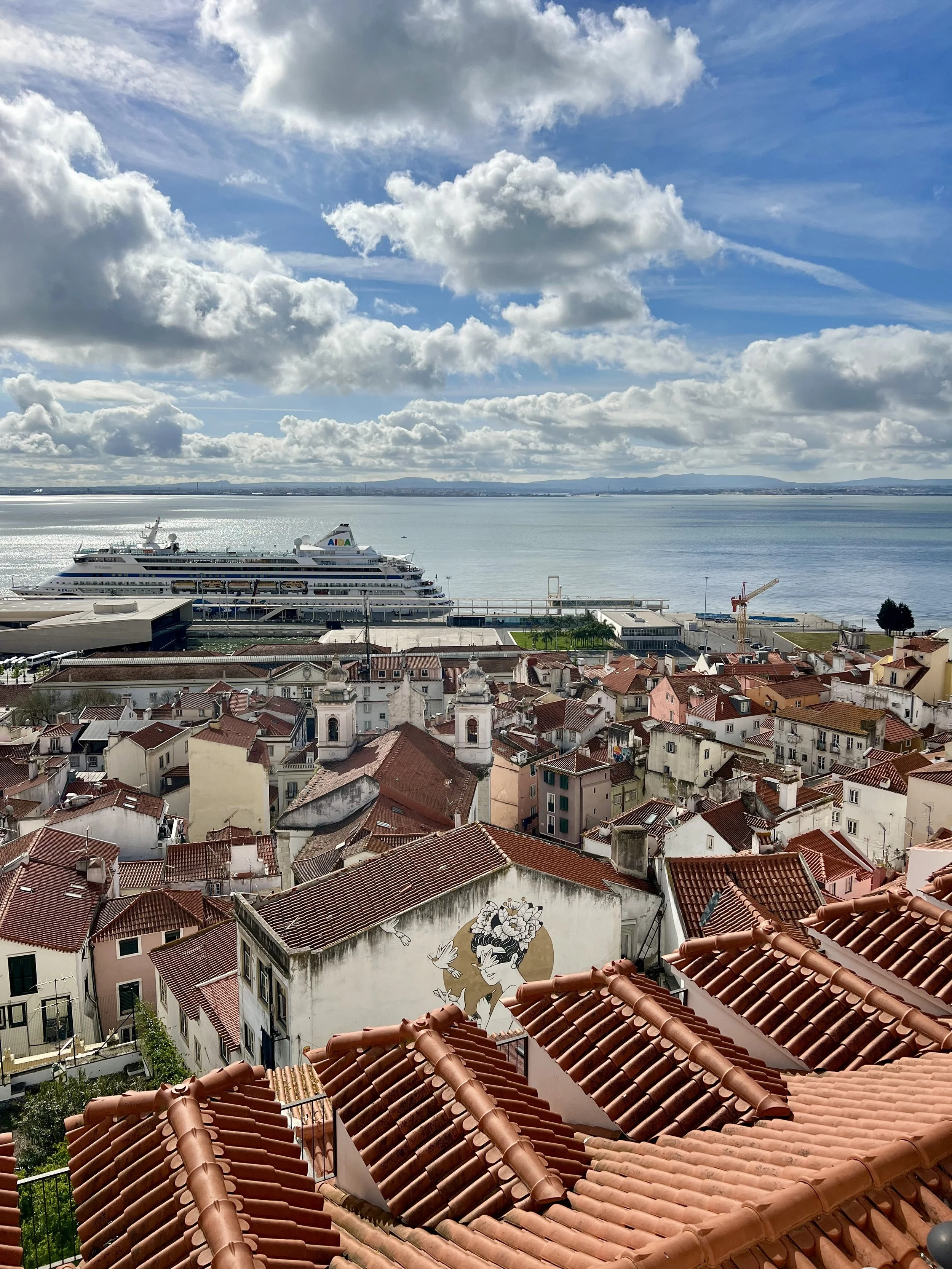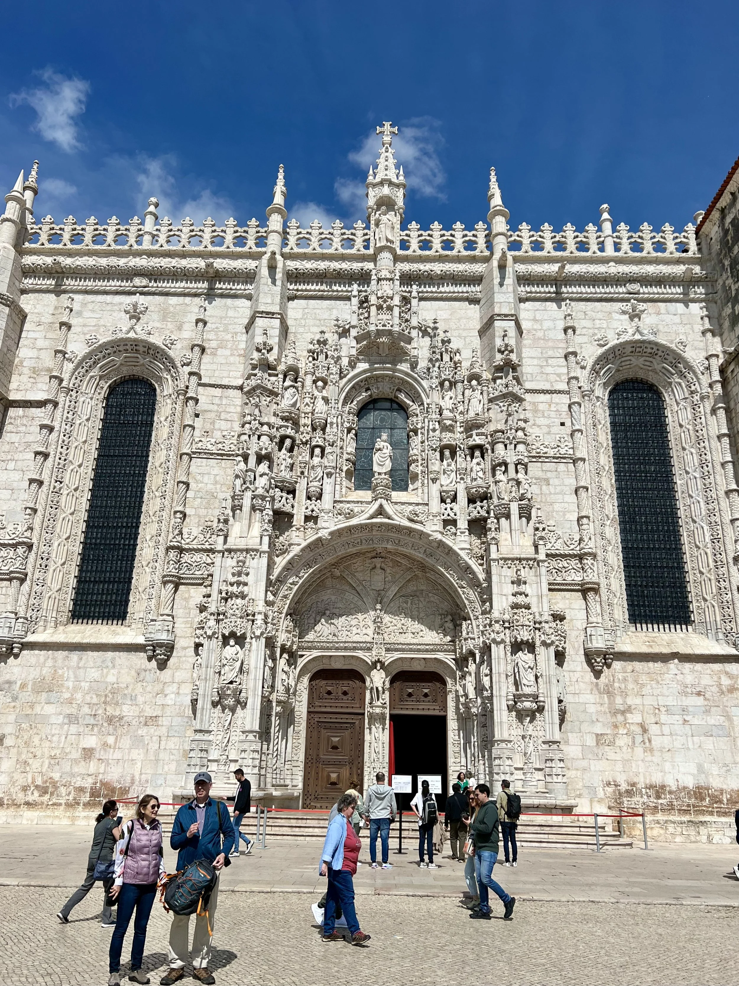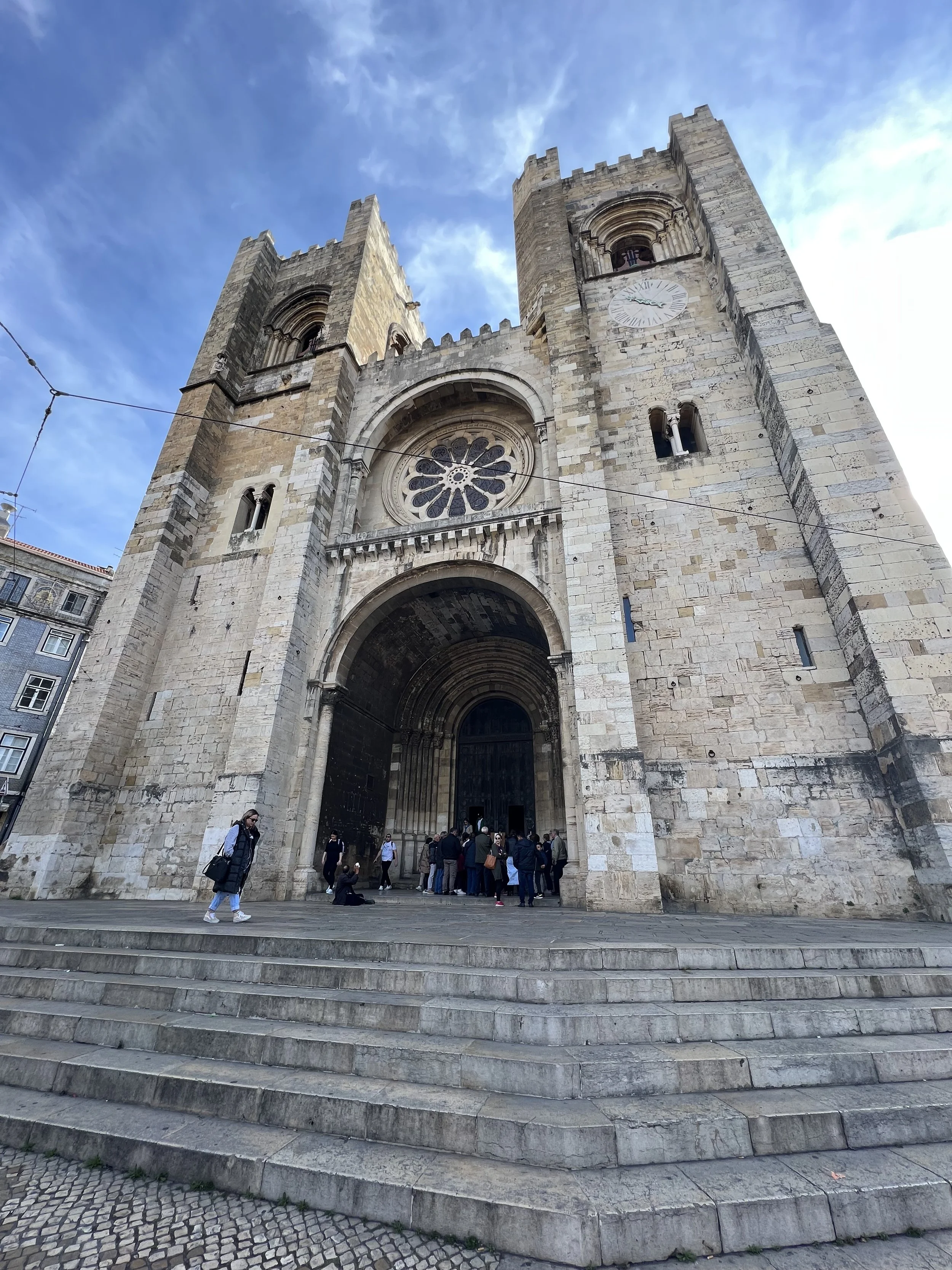 We loved our Tuk Tuk Tour with Paulo (that I booked on Viator and was chartered by I took a tuk tuk which is a wonderful company)! We passed Ramiro where Anthony Bourdain filmed (and next time, when we have more time, we will queue up to eat there). Our first stop was the Old City, then to Grassa, to Fado for cherry liqueur, LX Factory, and nd we went to Pasteis de Belem for a pastel de nata which was delicious! Then we visited the Monastery of the Hieronymites and Tower of Belém, which are Unesco sites. The sailing statue was super interesting and I love that a woman included. And the Pink Street was awesome with the umbrellas!!! Interesting fact is that there are 148 churches in Lisbon. We loved the Time Out Market Lisboa for lunch and we enjoyed sushi and a sushi taco at Confraria and Bo got mediterranean goodies at Manteigaria silva. Back at the hotel, Ryder plugged in his US power strip and blew the power for their room, so we headed to the bar to pass the time and Ryder got an education on how European Power systems work. Less is more indeed!
