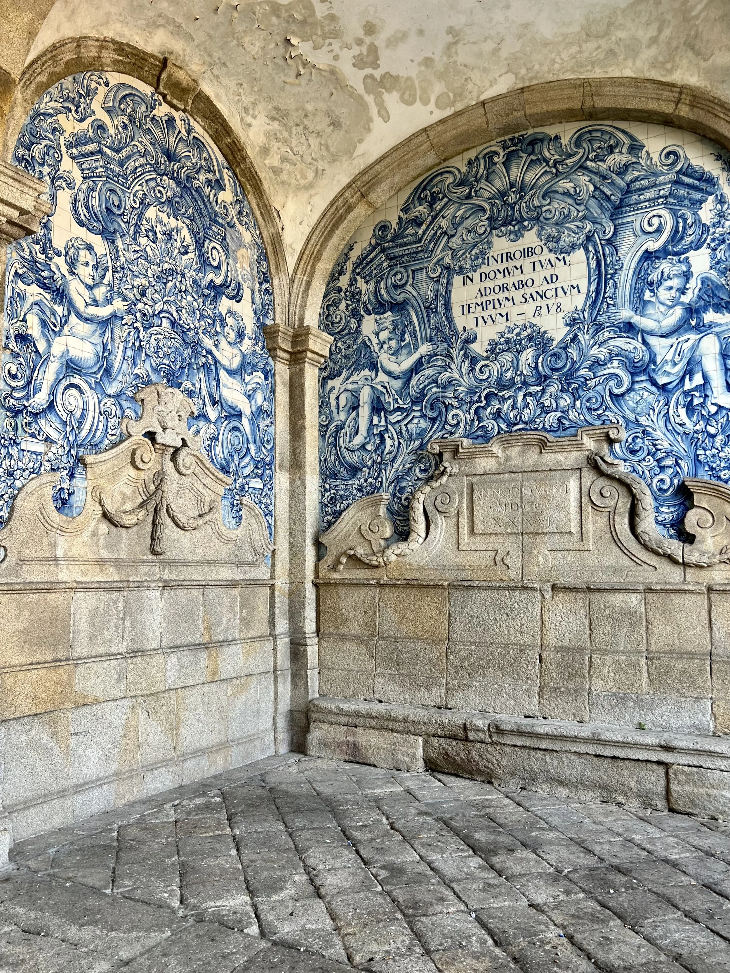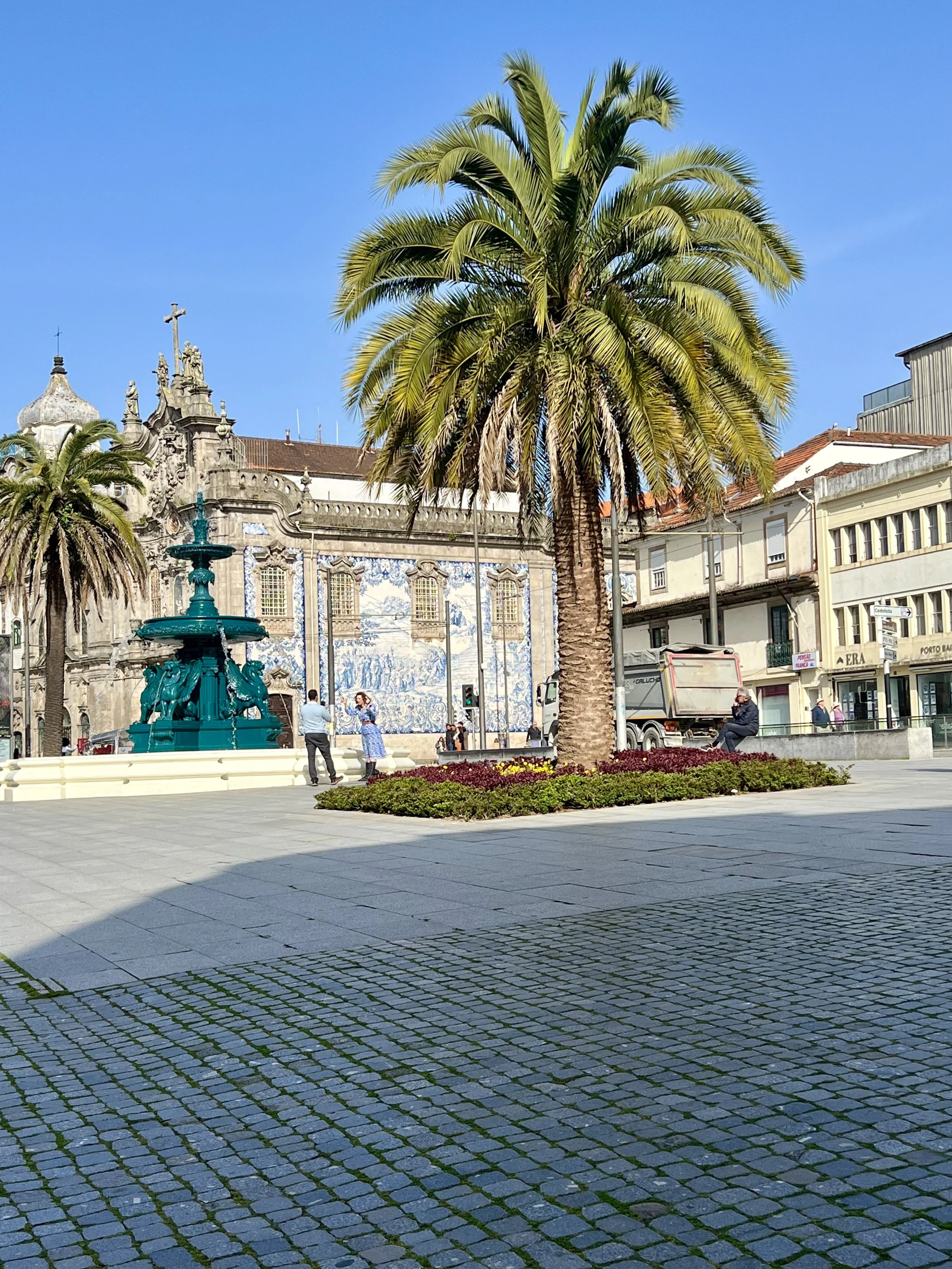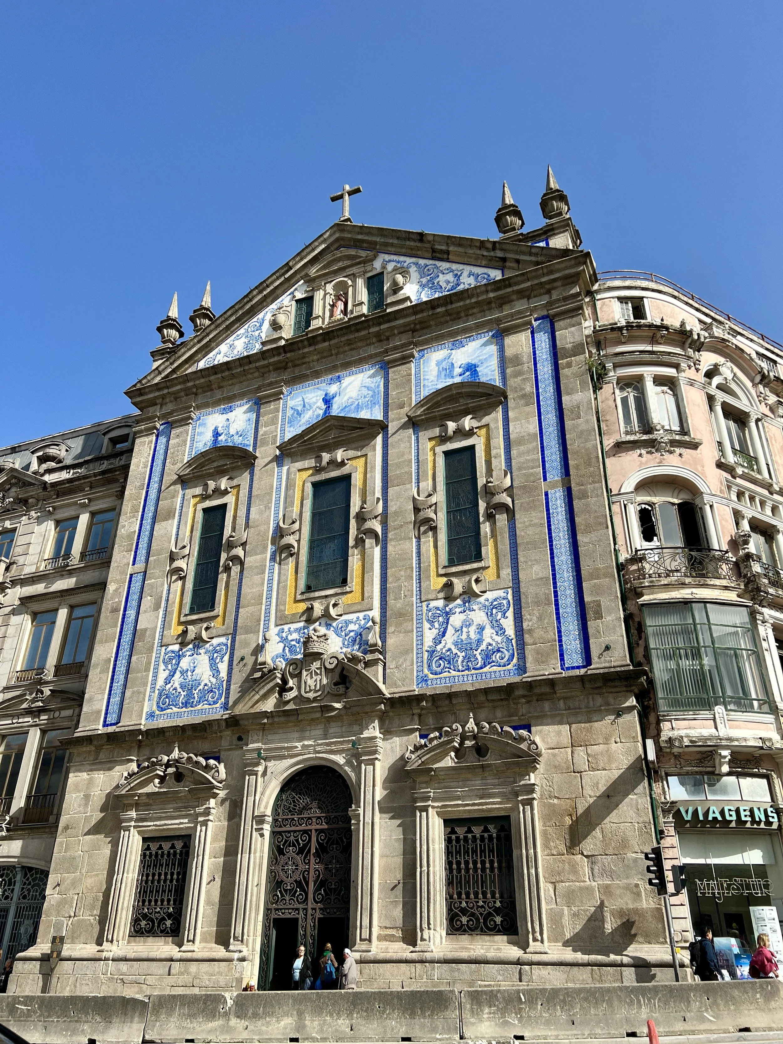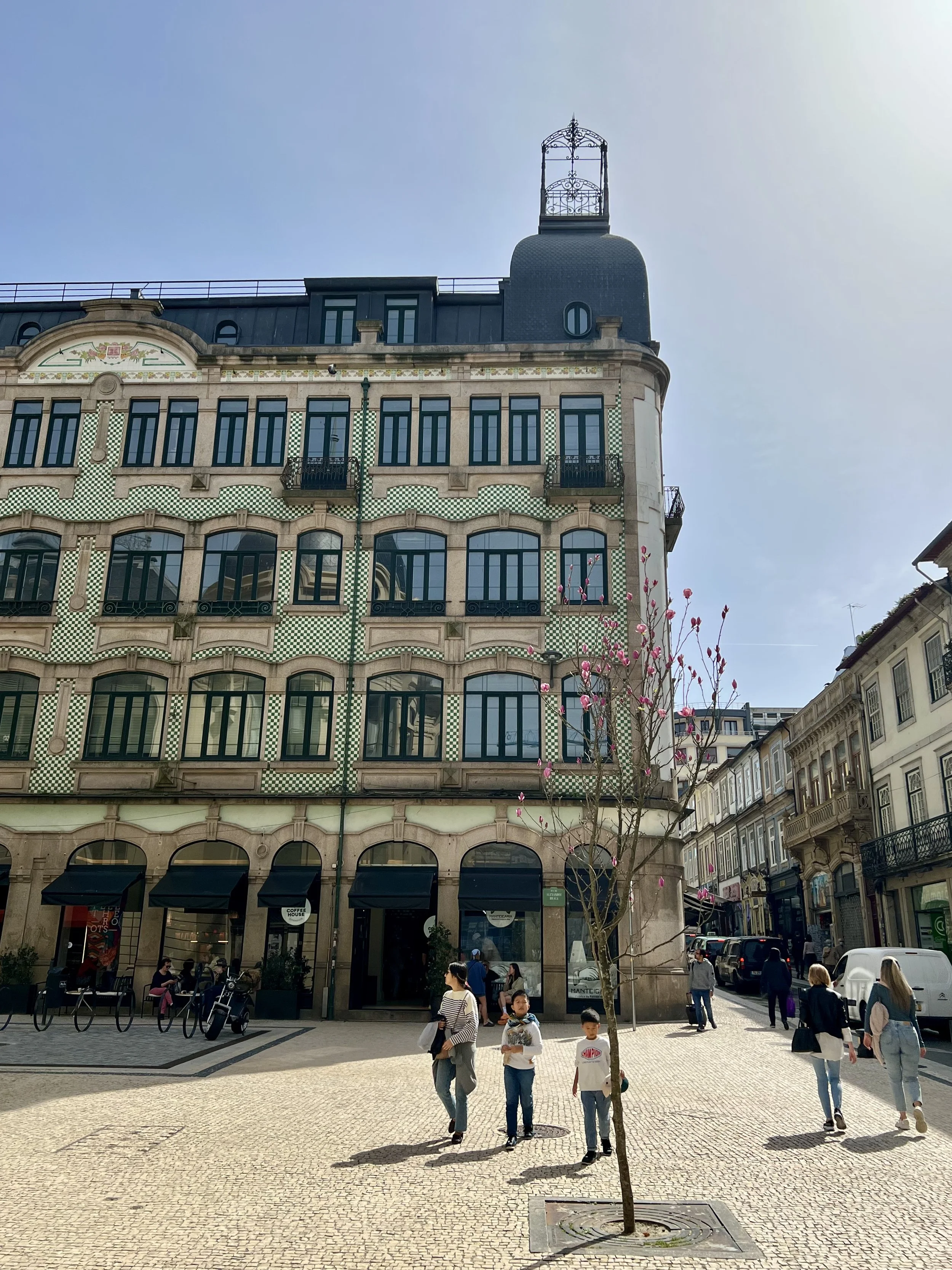 Our morning adventure was to Sinatra. We hired an orange tuk tuk to take us up to the Palace de Peña and passed beautiful properties and charming neighborhoods en route. A big bonus was that we drank from the fountain of youth … hope it works! Our driver dropped us off and we hiked up to the castle. We opted for garden passes as the castle ticketing lines were super long. Sam declared it one big mini-golf castle design. We hiked back down. and waited for our tuk tuk to arrive … and no one did and I don’t recommend booking with Sintra Welcome Centre. We hired another company that drove us most of the way … and after walking a wee bit more we found our original driver and he took us back to our car to make good on the delay. Then we headed up to Porto, passing colorful towns and beautiful landscapes as we drove North.