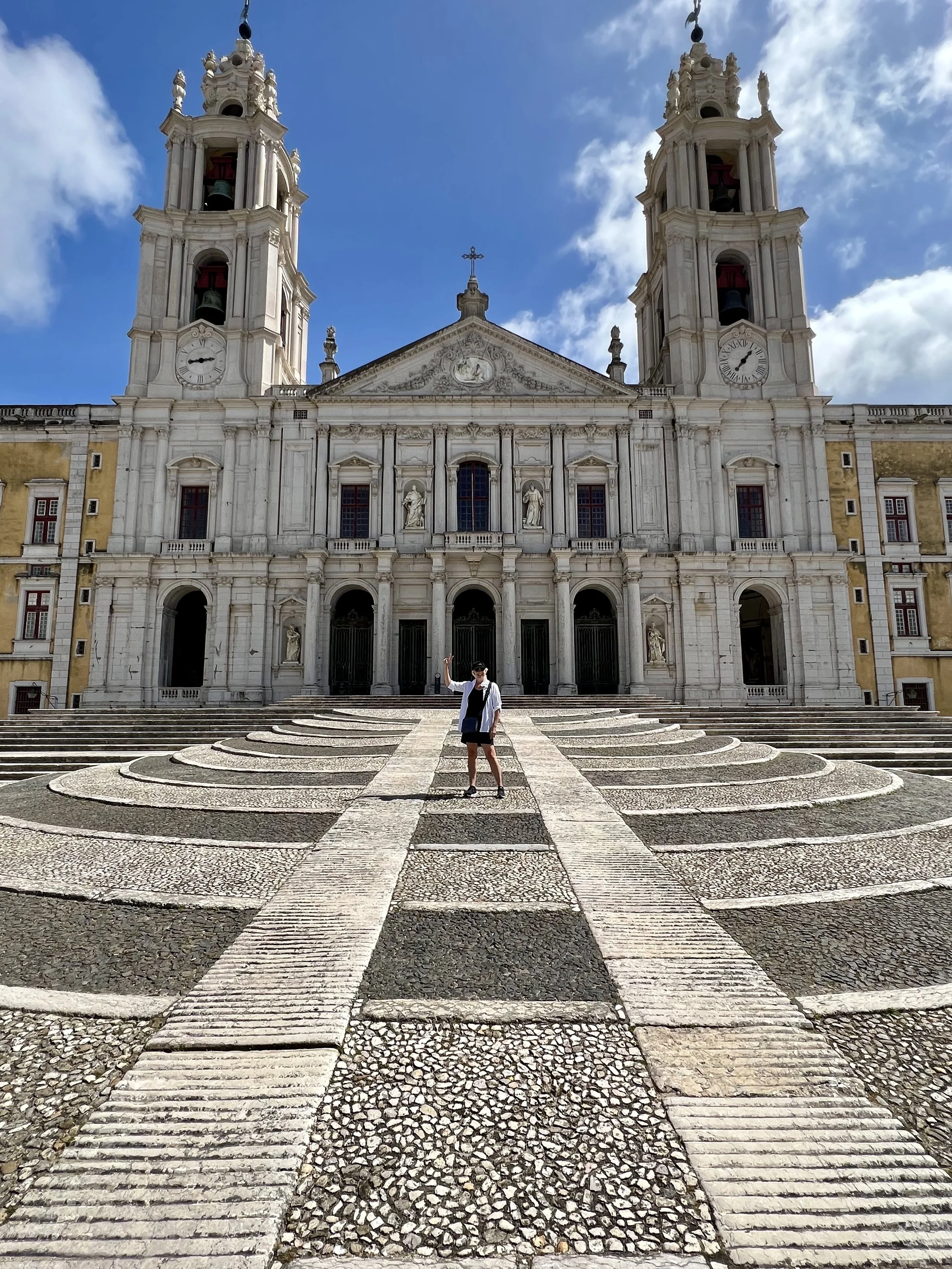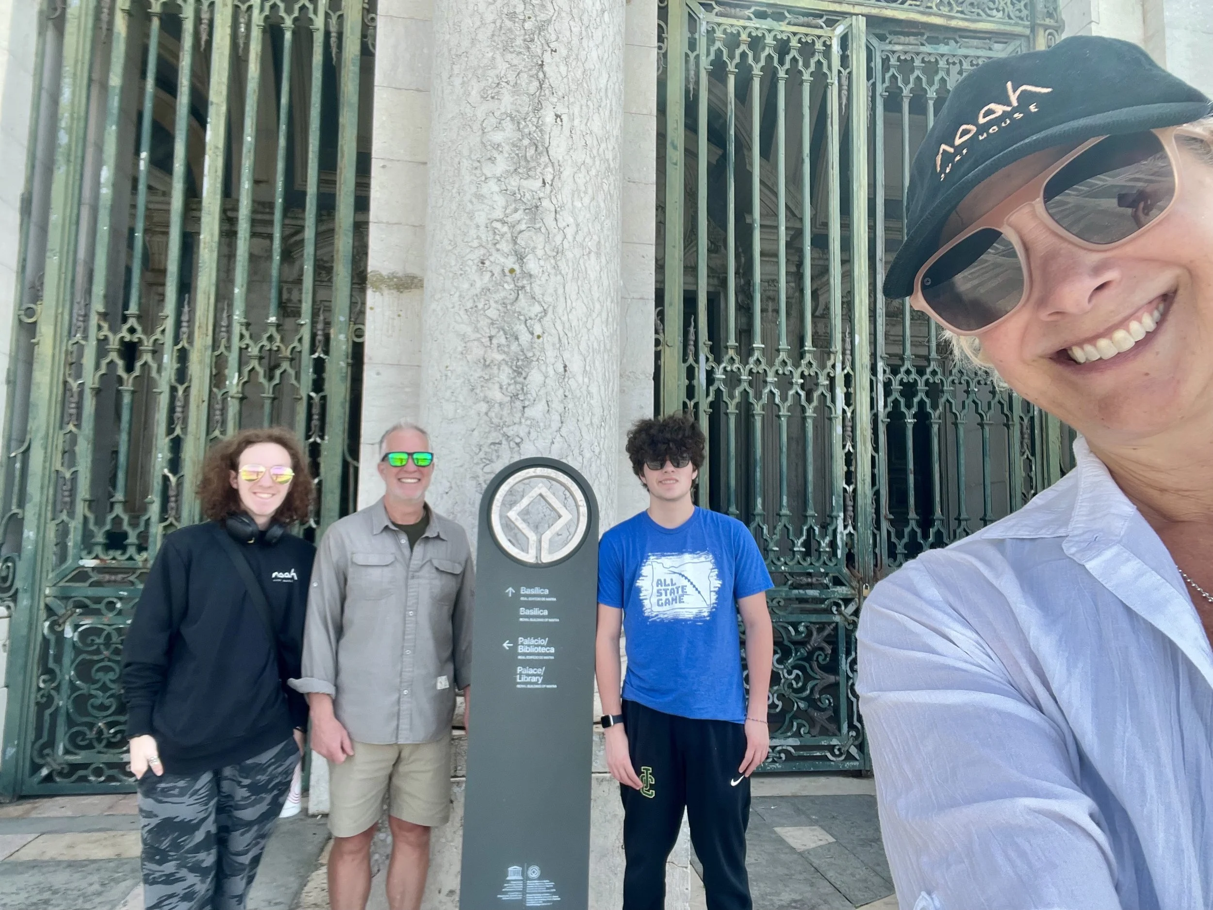 Bo surfed in Peniche and we sadly had to pack it up and say goodbye to Noah Surf House. We drove past many dutch mini windmills and learned “Dotting the hillsides, particularly in coastal regions, are windmills that have been used in the country since the 11th century.” We landed in Mafra to see the castle and gardens, which were beautiful and we had fun exploring.