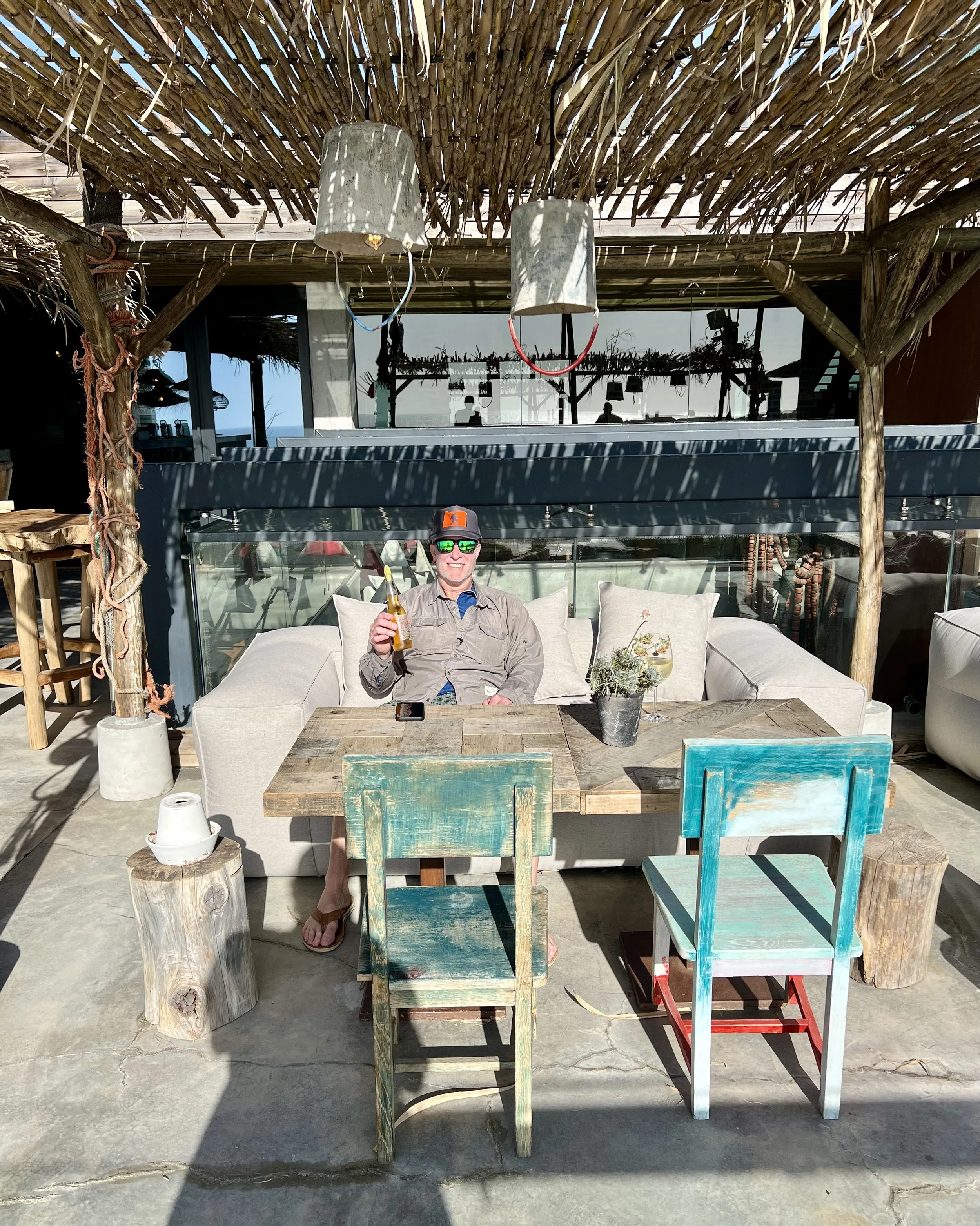 Bo and I did an early Morning trek with Nunu which was a hike, some bouldering and a beach walk. The beach is beautiful and I found some green glass and a few small shells … bummer was that there is lots of micro-plastics which reminded me I need to plan an eco-tourism trip to clean beaches. Back at Noah, breakfast was sliced Kiwi for me and a veggie omelette for Bo.