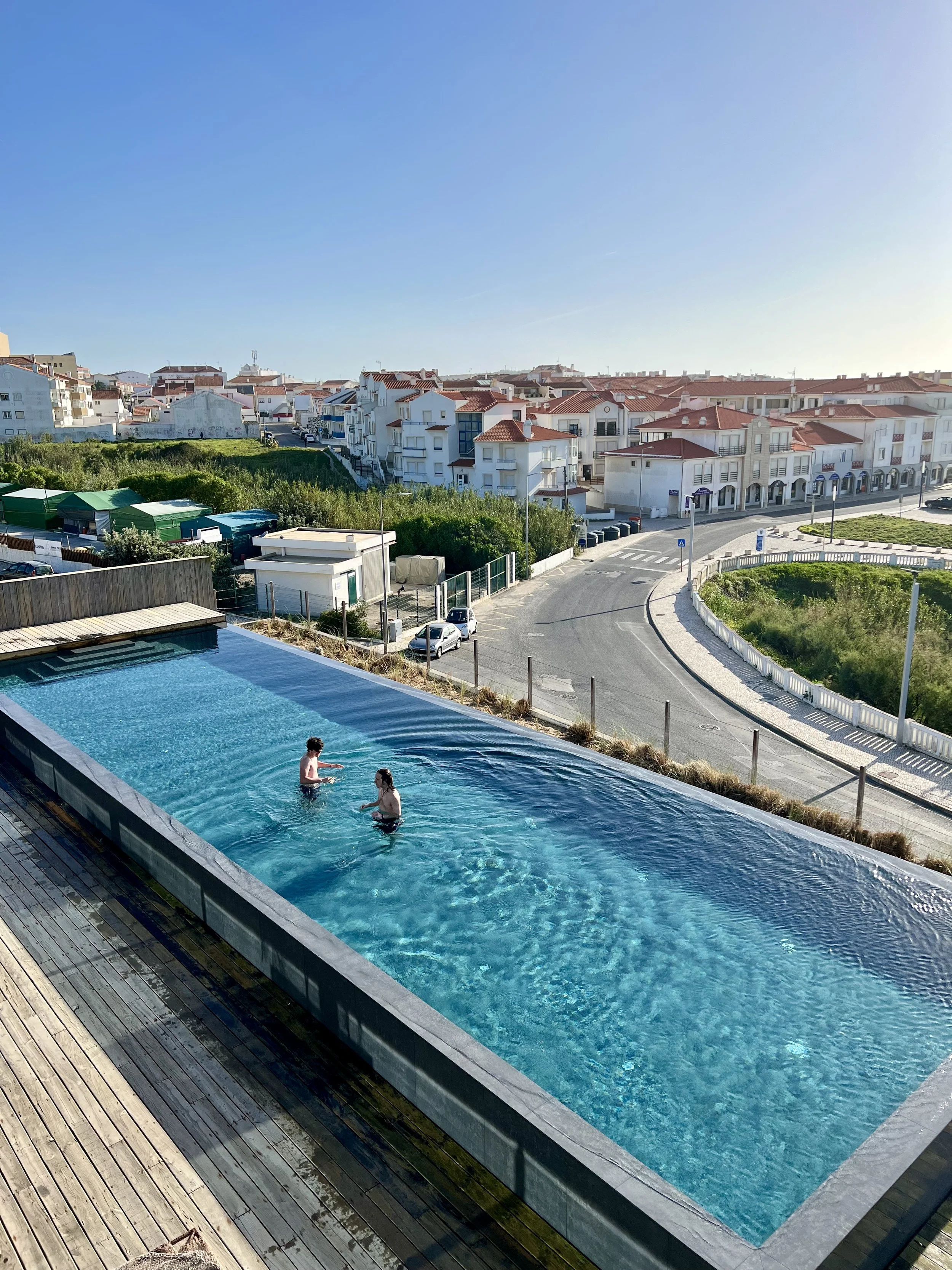 We adventured to Peniche to find surf. Supertuboes was too windy. Bo surfed at Peniche and has now officially surfed in Portugal. We took a bike ride in the afternoon and explored town. The boys jumped in the pool and hot tub as we enjoyed the newly opened rooftop bar. And to my surprise, I got Bo to join MTP and he is excited to travel the world together … especially if there are many stops in Portugal! Dinner was back to Noah’s restaurant and we tried the flaming sausage and the house salad which was quinoa and so unique.