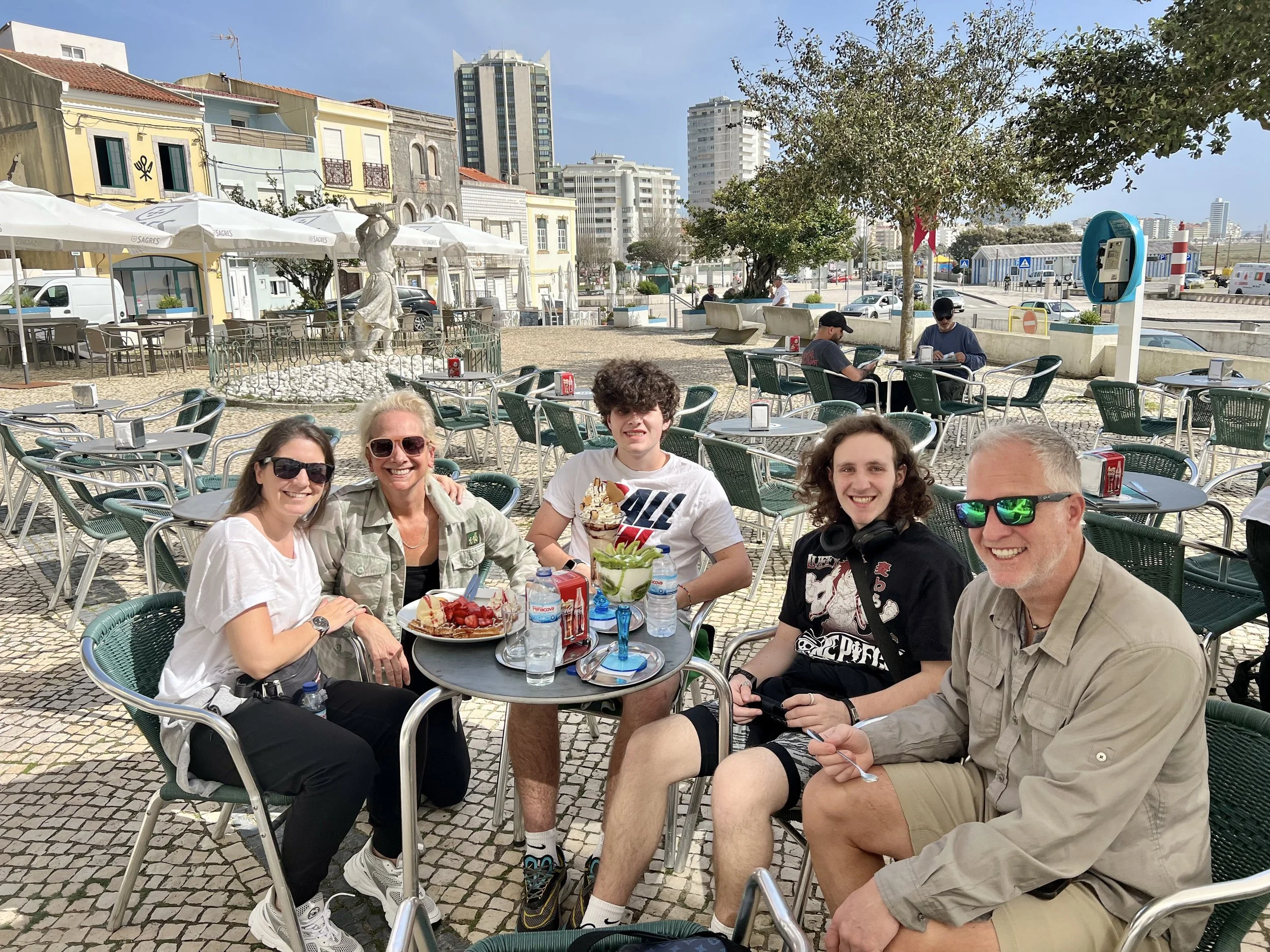 We packed it up and drove to Figueroa da Foz to meet Tita, my friend I met in Antarctica. She’s one of my fellow travelers that thought I was Gwendolyn Christie. We met up at an adorable outdoor ice cream and crepe cafe on the water and had the best time. She treated the boys to monstrous ice cream and waffle treats and we told Bo so many funny stories from our Antarctica adventure. It’s so fun to meet friends when traveling and she is a gem. We sadly had to say goodbye and it was off to Santa Cruz.