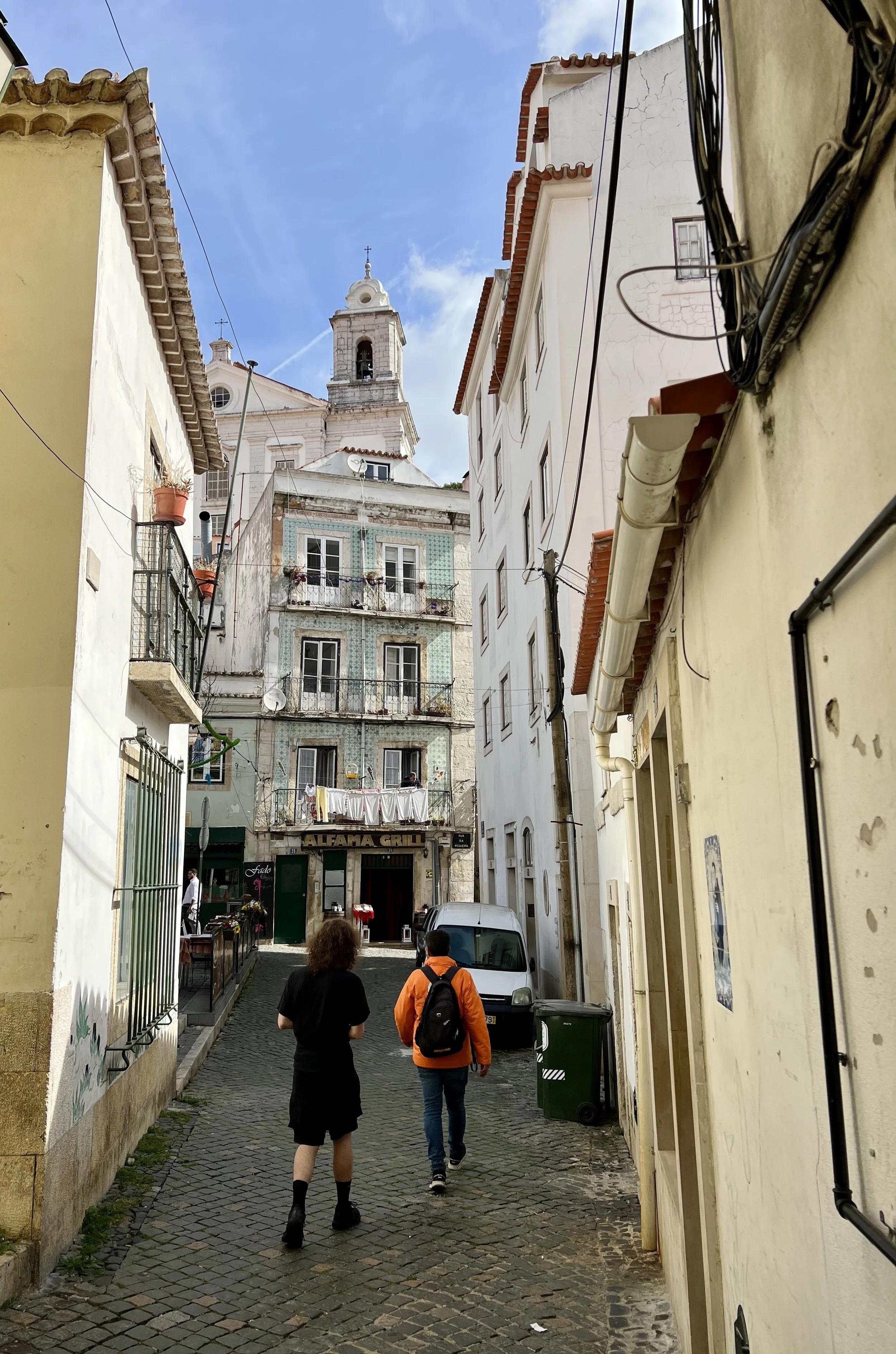 Dinner at Bohemia Lx - St António Casa de Fado for some traditional Portuguese food … which included mandatory listening while the singers were performing. Sam slept through most of dinner still hit by jet lag. I had to dorodo fish, Bo had the pork, and boys had the steak frites.