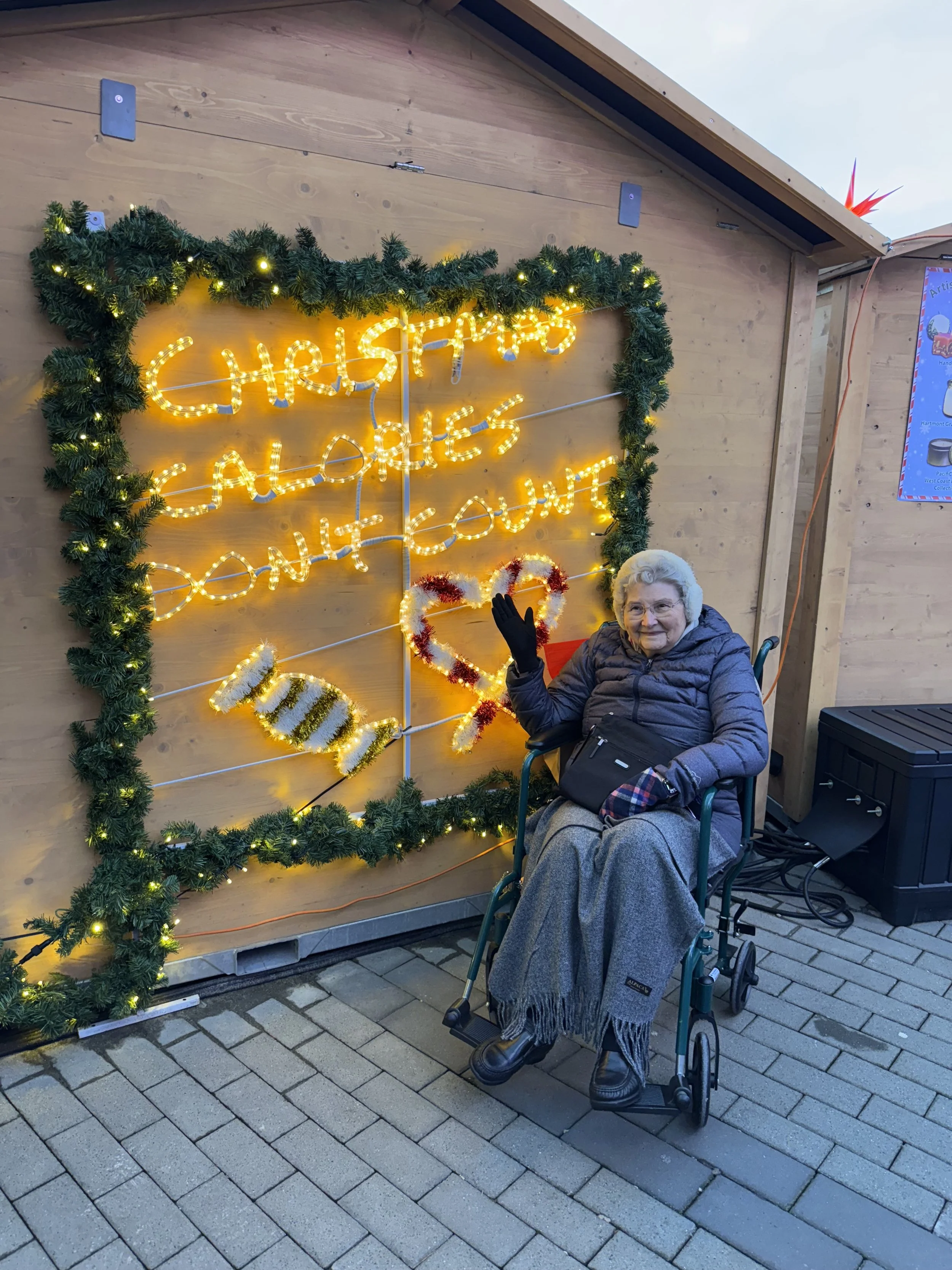 Just after Eva celebrated her 90th birthday, we took her on a trip born from a dream she’d long held—one inspired by her grandchildren and their stories of holiday magic. She wanted to see the Vancouver Christmas Market, Vancouver’s authentic German village in the heart of downtown, a place where you can sip, savor, and celebrate. None of us quite knew how deeply the experience would settle into our hearts.